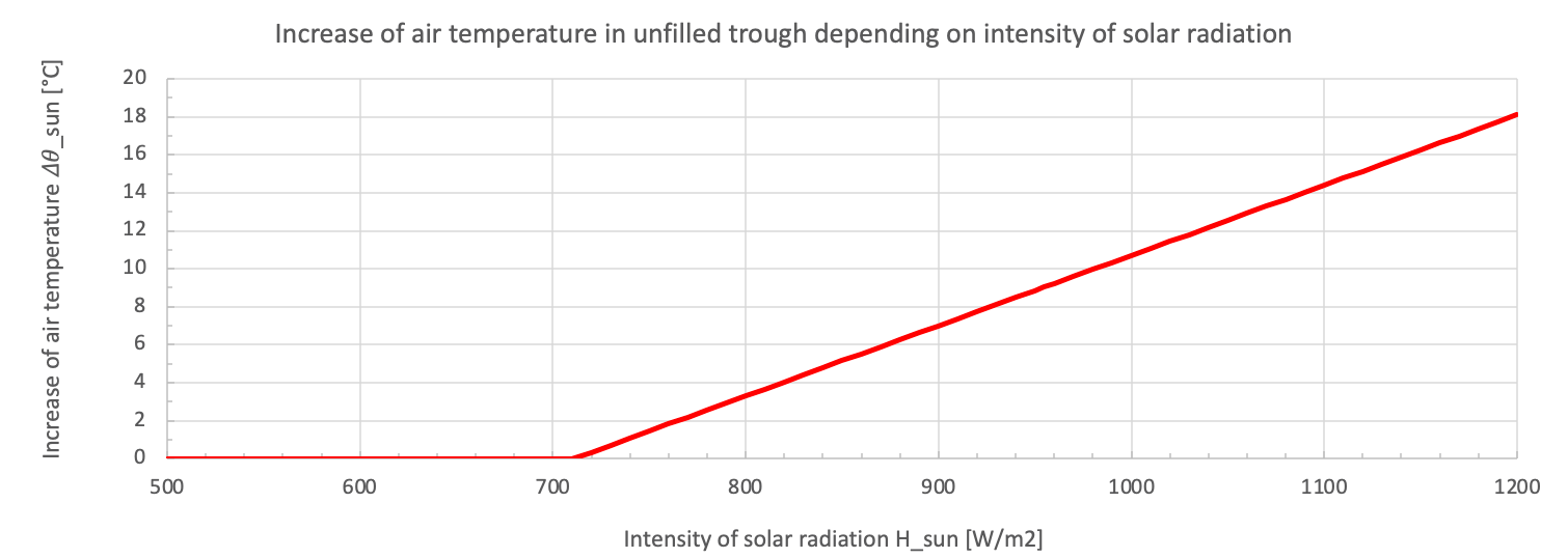 | $\operatorname{Min}\left(30, \operatorname{Max}\left(0.037H_{sun}-26.3, 0\right)\right)$ | in air-filled trough |